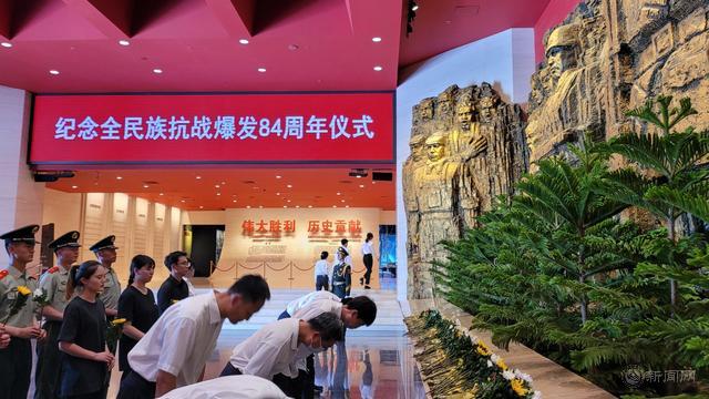 7月7日上午,纪念全民族抗战爆发84周年仪式在中国人民抗日战争纪念馆举行。中共中央政治局委员、北京市委书记蔡奇主持纪念仪式。中央有关部门、中央军委政治工作部和北京市负责同志,在京参加过抗日战争的老战士代表、抗战将领亲属代表,首都学生、部队官兵、干部群众等各界代表400余人参加。