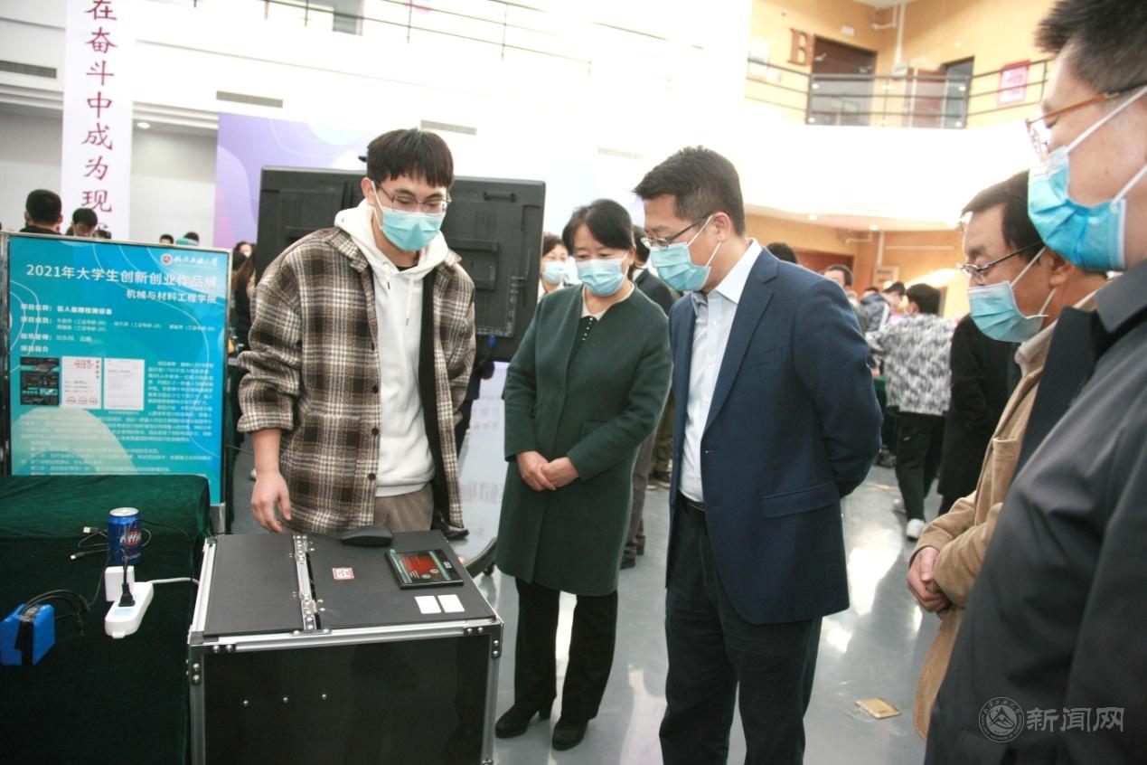 随后,缪劲翔等校领导参观展览。观看展品的过程中,缪劲翔与指导教师、学生代表亲切交流,详细了解beat365创新创业工作与人才培养、大学生创新创业项目、学生就业和创业等情况,并对各有关职能部门、各学院、指导教师在项目实施过程中所付出的辛勤劳动表示感谢。缪劲翔希望,广大教师和青年学生能够以更加饱满的热情投入到创新创业活动中去,坚持立德树人,强化实践育人,以工业强国为己任,为beat365深化人才培养模式改革和提升人才培养质量做出更大贡献。