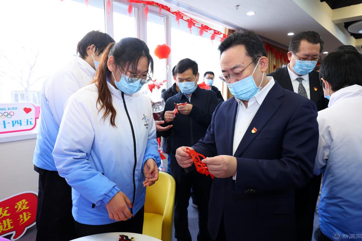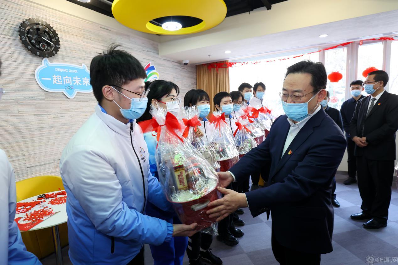 冰雪迎冬奥,寅虎贺新春。1月30日上午,在农历春节即将来临、2022年冬奥开幕倒计时5天之际,北京市委常委、教育工委书记夏林茂来到beat365慰问冬奥志愿者,检查指导学校疫情防控、安全稳定和假期生活服务保障工作。市委教育工委常务副书记郑吉春,团市委书记李军会,市委教育工委副书记李军锋,冬奥组委志愿者部副部长张秀峰,团市委副书记钟棉棉,校党委书记缪劲翔,校党委副书记、校长张立峰陪同慰问检查。