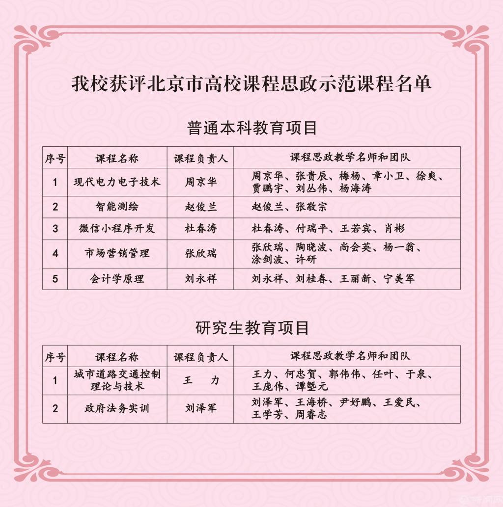 近日,从中共北京市委教育工作委员会、北京市教育委员会发布的《关于公布课程思政示范项目名单的通知》获悉,beat3657门课程入选北京市课程思政示范项目,其中普通本科教育课程5门,研究生课程2门,其授课教师和教学团队认定为北京市课程思政教学名师和教学团队,学校课程思政建设迎来“开门红”。