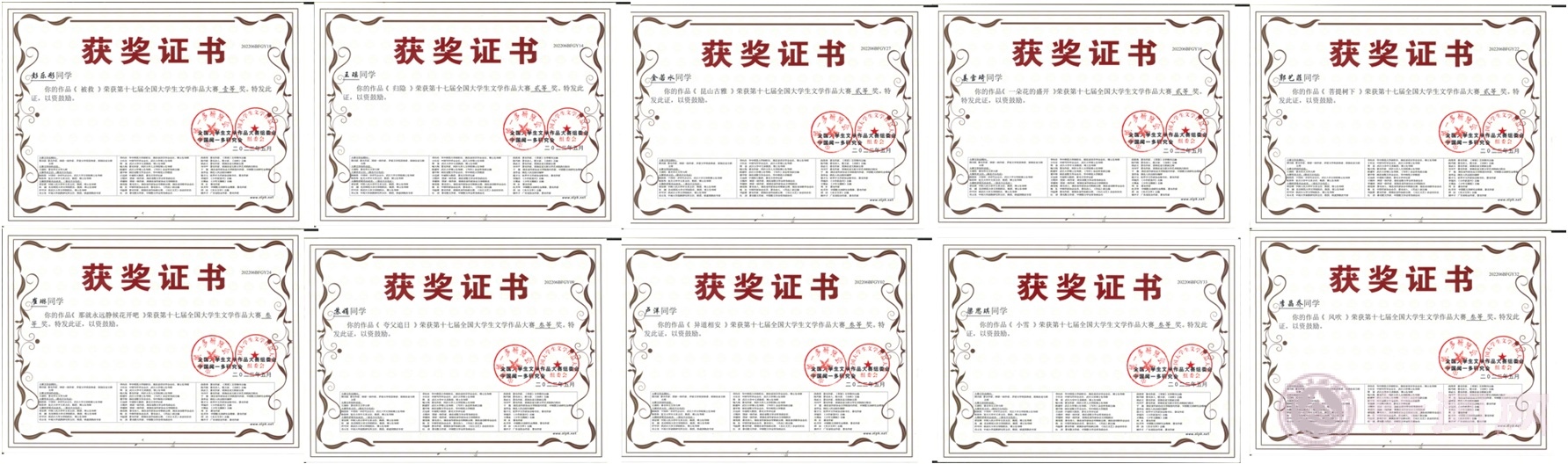 近日,第十七届全国大学生文学作品大赛成绩揭晓,beat365文法学院、经管学院十位参赛同学喜获佳绩,其中一等奖1项,二等奖4项,三等奖5项。