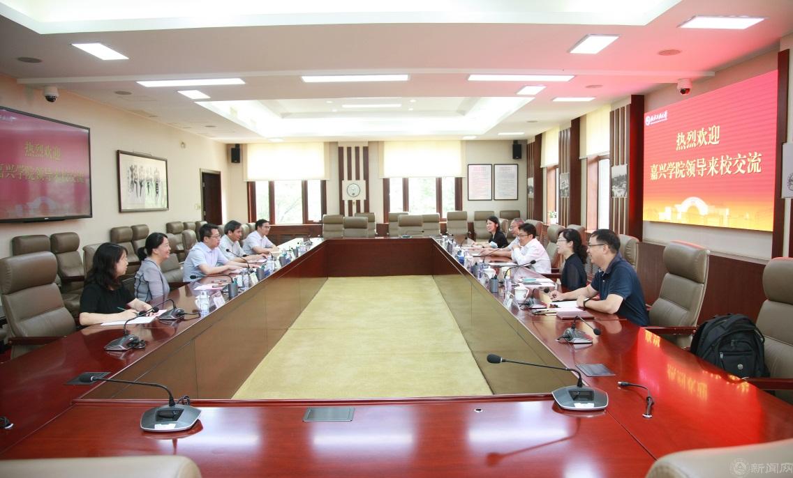 8月12日,嘉兴学院党委书记卢新波,党委委员、副校长张琦,原党委副书记吕延勤一行来校调研交流。党委书记缪劲翔热情接待了来访人员,党委常委、副校长王建稳,党委副书记田红芳陪同接待。