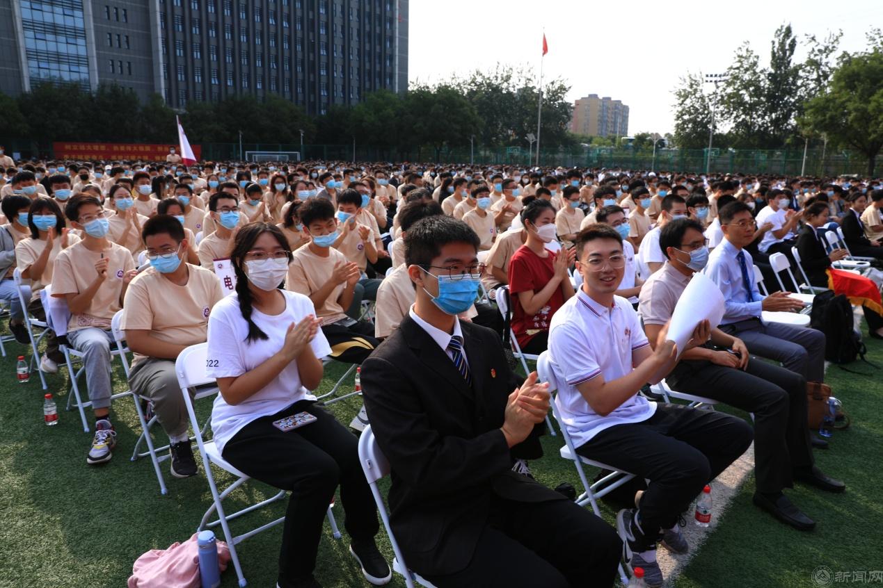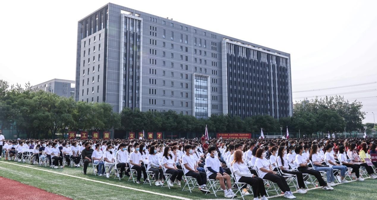 9月3日上午,beat365官方网站2022级新生开学典礼在学校大操场隆重举行。校领导缪劲翔、张立峰、王建稳、田红芳、马春成、栗苹、王力、卢晓斌,各学院院长及相关职能部门负责人,新生辅导员、班导师,与4755名新生一同参加了开学典礼。典礼由党委常委、副校长栗苹主持。
