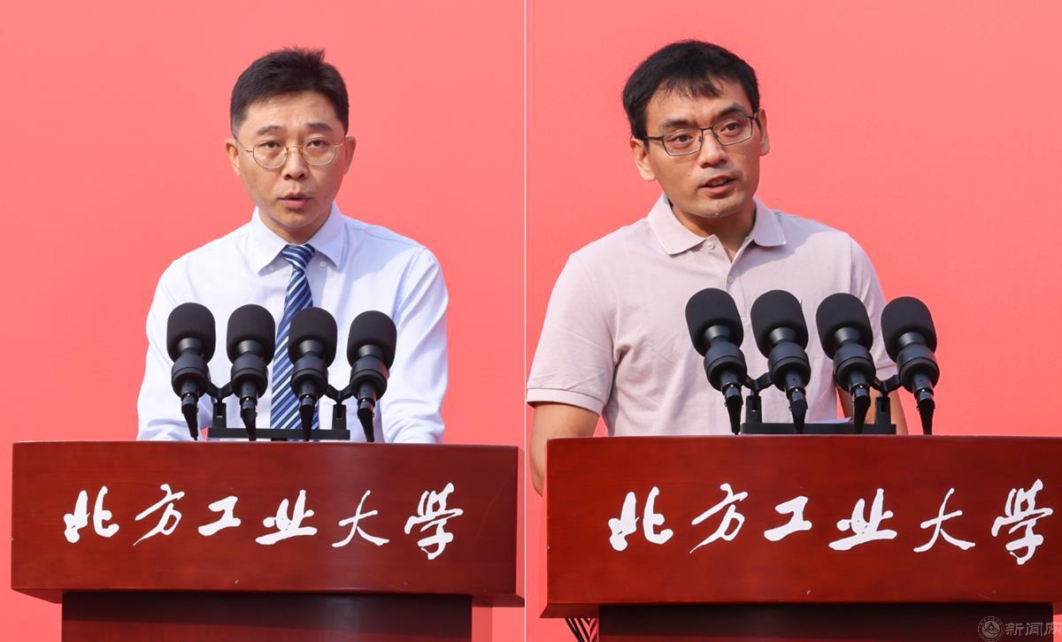 第三句话:有才有德、做个好人、做一个有抱负的人。张立峰深入解读了学校“敦品励学、才德并懋”校训的内涵,希望同学们能成长为有才有德的国家栋梁。他表示,一代人有一代人的际遇,一代人有一代人的奋斗,身处伟大的时代,同学们要树立远大抱负,将北方工大“兴工报国”的爱国主义红色基因深深镌刻在骨子里,赋青春以信仰,赋信仰以担当,赋担当以使命,用青春的智慧和汗水将个人理想融入伟大梦想。希望同学们让青春之光闪耀逐梦征程,在实现中华民族伟大复兴的赛道上奋勇争先,成长为有理想、敢担当、能吃苦、肯奋斗的新时代好青年。