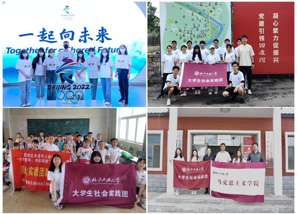 各实践团队通过走访调研、理论宣讲、志愿支教、文创展示等形式,发挥专业优势,了解社情民情,为乡村振兴积极贡献力量。“文旅e乡村,智慧四渡河实践团”走进北京市怀柔四渡河村,为当地民宿管理注入科技力量,助力民宿提质增收;“追光筑梦实践团”走进延庆区董家沟村,发挥专业优势为当地产业发展、基础设施建设、生态环境治理制定规划方案;“‘乡’约红旗·青年先行实践团”前往内蒙古科右前旗考察乡村变化,服务当地普法工作;“绿源星青年实践团”走进北京市密云区,考察生态环境,传递绿色生态文明理念;“星火实践团”深入四川省吉安镇吉安小学开展“守护童年、多彩暑期”支教活动;“燃情冰雪实践团”走进北京冬奥组委开展冬奥故事双语宣讲,为中国冰雪运动发展贡献青春力量。