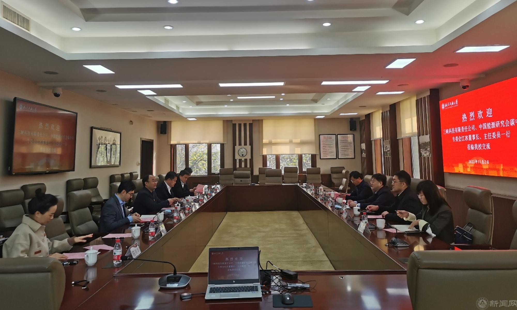 11月2日上午,三峡科技有限责任公司(以下简称三峡科技)党委书记、董事长、中国能源研究会碳中和专委会主任委员江冰一行来beat365调研交流。党委常委、副校长王力,校长助理陈群出席座谈会。