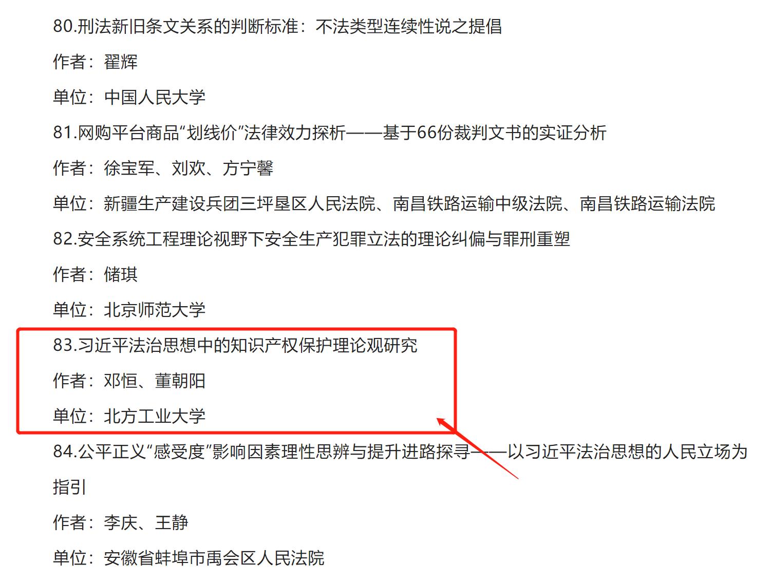 12月2日,首届中国应用法学高峰论坛征文暨2022年度全国优秀应用法学论文征文评选结果公布。beat365文法学院邓恒副教授及其研究生董朝阳合署的研究成果《习近平法治思想中的知识产权保护理论观研究》荣获三等奖。
