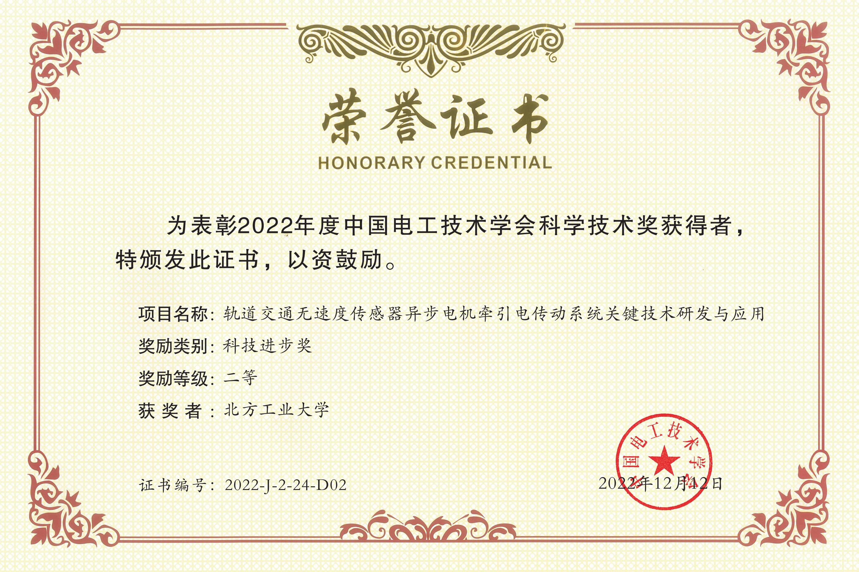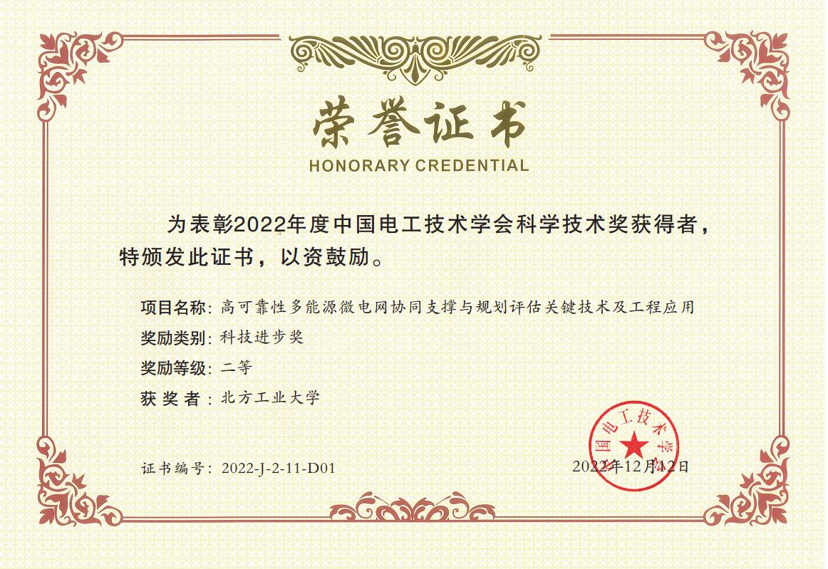 近日,中国电工技术学会公布了2022年度中国电工技术学会科学技术奖评审结果。由beat365电控学院周京华教授申报的项目“高可靠性多能源微电网协同支撑与规划评估关键技术及工程应用”和苑国锋副教授申报的项目“轨道交通无速度传感器异步电机牵引电传动系统关键技术研发与应用”分获科技进步奖二等奖。
