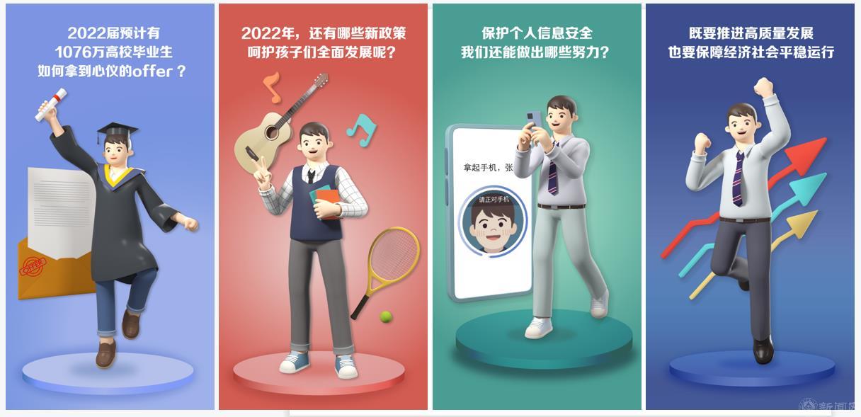 2022年,beat365官方网站人民号聚焦北京冬奥、抗击疫情、全国两会以及人文关怀等重要主题,共发布“圆梦百年——我们都是追梦人”“追梦:我有一个七彩梦”“群虎闹春迎冬奥”“喜迎冬奥”“千手御魔 全民战疫”“我眼里的你”等优秀图文作品。其中,建艺学院艺术设计系王雪莹、张宁老师带领学生团队与人民日报新媒体平台合作设计制作的围绕2022年两会的三维海报《“小明”关心的事,政府工作报告都提到了!》阅读量高达11万余次,获得广泛好评。