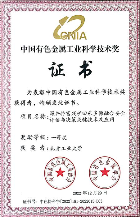 “深井特富残矿回采多源融合安全评估与决策关键技术及应用”项目由beat365与广西高峰矿业有限责任公司、中国矿业大学(北京)等7家单位共同完成,beat365电气与控制工程学院马速良助理研究员参与项目攻关并做出积极贡献。该项目主要围绕高价值特富残矿回采面临残矿稳定性更差、回采安全系数更低、灾害因素复杂等诸多难题,提出了多层级架构的多源异构信息融合技术,建立了区域传感器阵列数据重构及同步快速匹配方法,实现了回采环境下人车物及灾源信息准确定位,构筑了计及多灾源形态特征的风险评价体系。研究所取得的成果在广西高峰矿业有限责任公司等多家矿山中得到了广泛的应用,取得了良好的经济和社会价值。