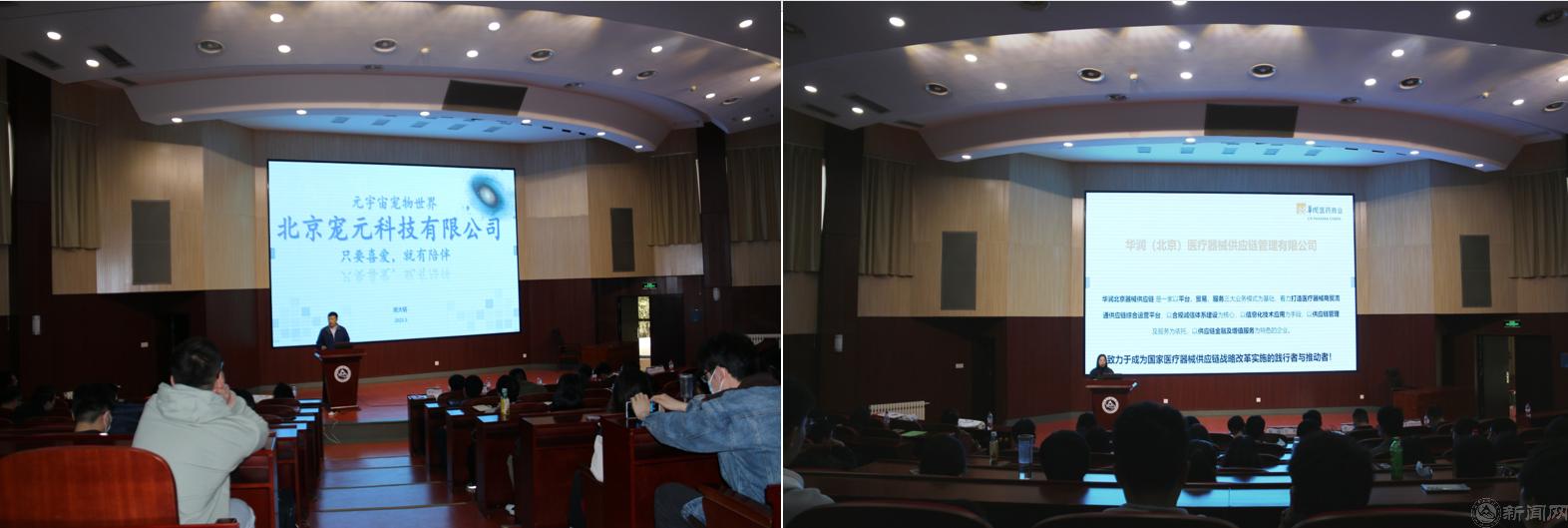 驻区企业代表北京医涛智能科技有限公司、北京宠元科技有限公司、华润(北京)医疗器械供应链管理有限公司等用人单位向同学们介绍了企业的特色亮点、商业模式、未来规划,并重点宣介了实习岗位和招聘岗位需求和待遇。