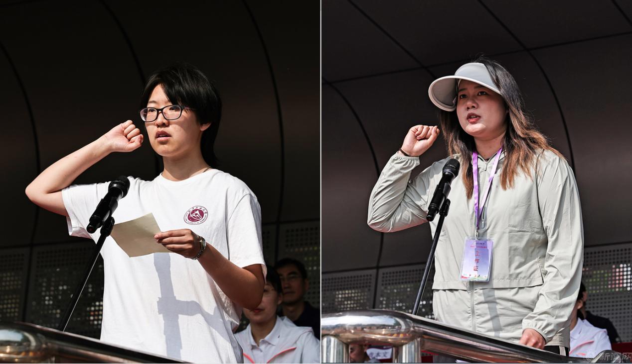 运动员代表李雪丽和裁判员代表马擎分别代表全体运动员和裁判员进行庄行宣誓。