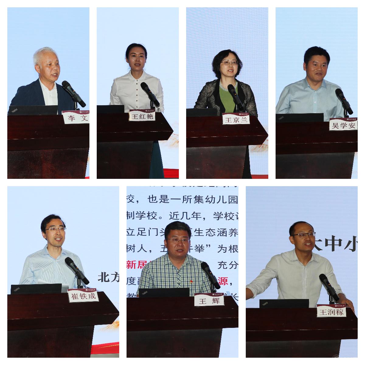石景山区教育分院院长李文、中国科学院附属玉泉小学校长王红艳、石景山区金顶街第二小学校长王京兰、首都师范大学附属苹果园中学校长吴学安、beat365官方网站附属中学校长崔铁成、门头沟区清水学校校长王辉、beat365官方网站马克思主义学院副院长王润稼围绕学校思想政治教育创新、大中小学思政课的有效衔接、各学段思政课学情调研、大中小学思政课教学改革、大中小学思政课实践教学等议题依次进行研讨发言,分享了各单位在推动大中小学思政课一体化建设上的经验做法和工作思考。