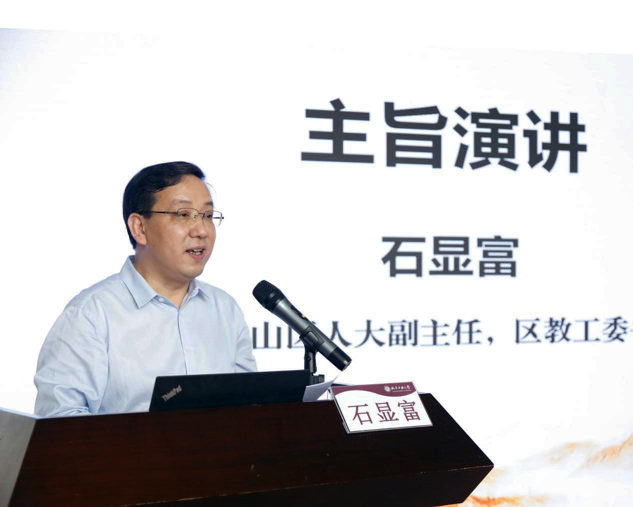 石景山区人大常委会副主任、区教工委书记石显富,大兴区教委德育科科长姜苗分别作主旨演讲。石显富就beat365官方网站一直以来对石景山区基础教育的支持表示感谢。他介绍了石景山区教育系统以北京市大中小幼一体化德育实践研究示范区建设为载体,构建横向融通、纵向衔接的幼小中高一体化联动体系,坚持守正创新、凝心聚力,全面提升各学段思政课课程建设与师资质量,强化学高从教、身正示范,全力打造高素质思政教师队伍等方面的做法与成效。姜苗分享了大兴区教育两委坚持党的全面领导,深入思考大思政课“为何一体化”“何为一体化”“如何一体化”等重大问题,党政齐抓共管,健全机制,打破壁垒,用党的创新理论不断推进“大思政课”一体化建设的有效经验。