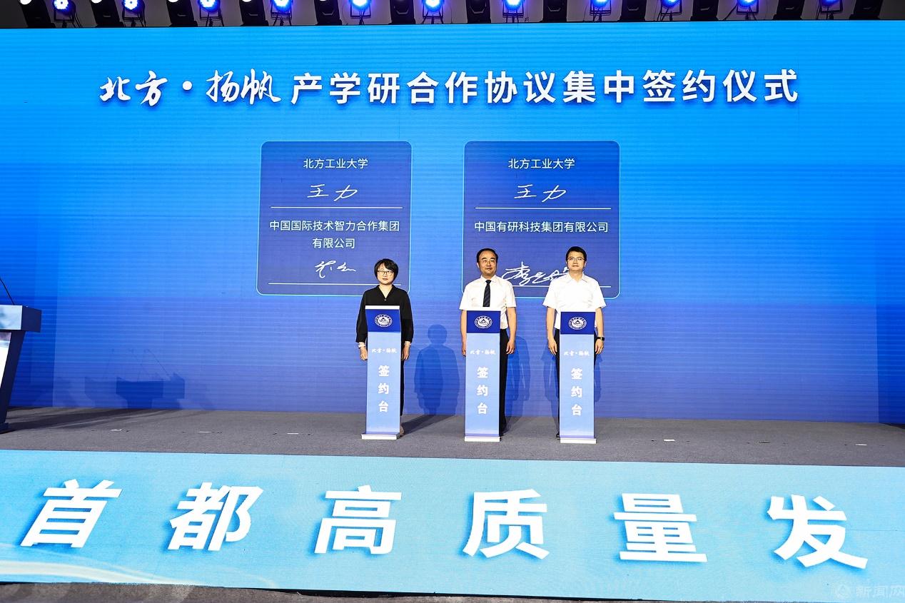 校党委常委、副校长王力代表学校与来自中国国际技术智力合作集团有限公司、中国有研科技集团有限公司、中铝环保节能集团有限公司、北京建工集团等18家企业现场集体签订了产学研合作协议。
