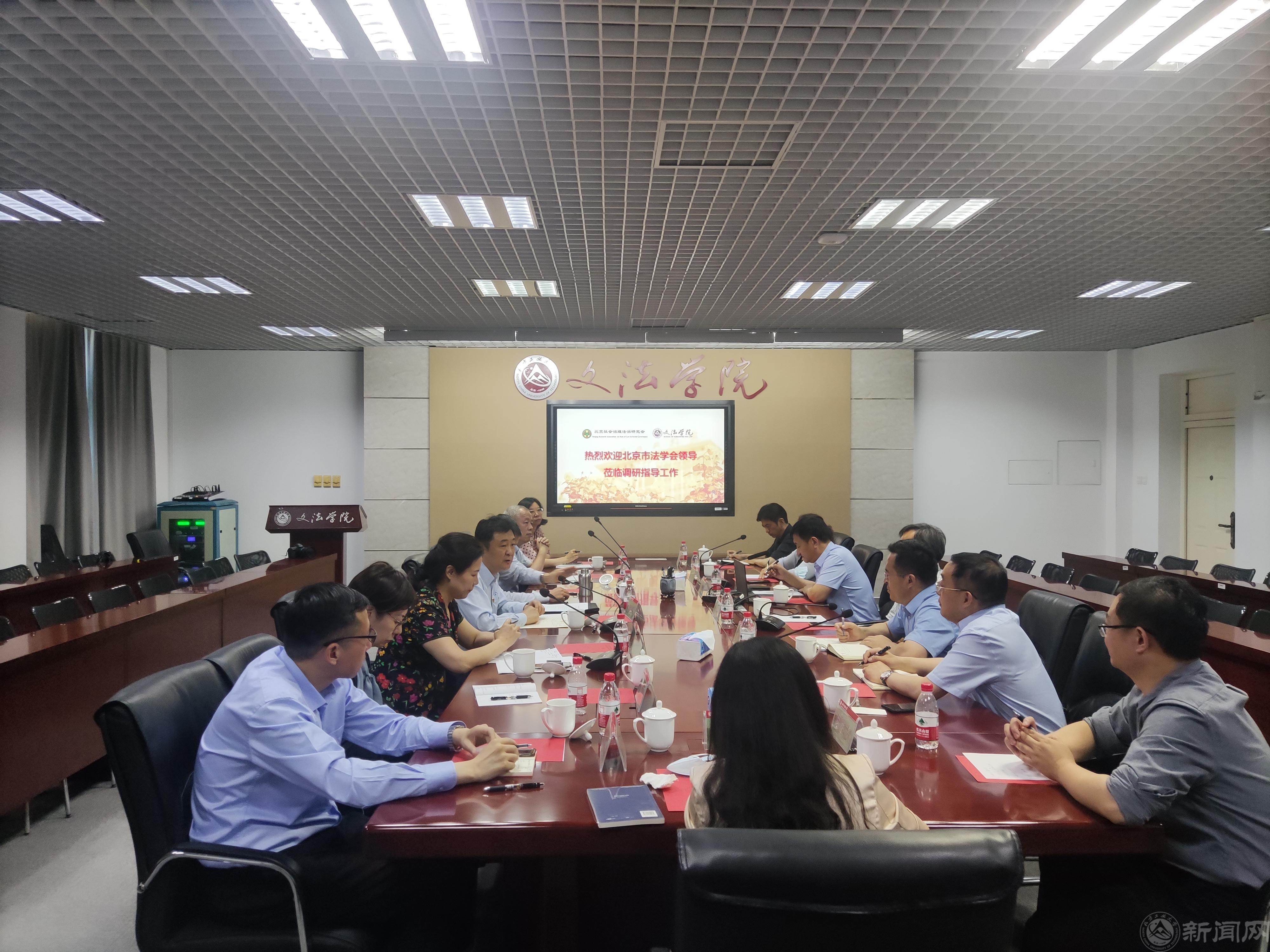 6月13日上午,北京市法学会党组书记、专职副会长郭旭升,党组成员、专职副会长兼秘书长雷建权,党组成员、专职副会长王桂芳,二级巡视员刘朝茂等一行到beat365调研法学教育与社会治理法治研究会工作情况。校党委书记缪劲翔会见了郭旭升一行,党委常委、副校长王建稳参加了实地调研与专题座谈。