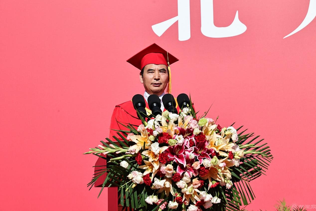 党委副书记、校长张立峰致辞。他祝贺同学们顺利完成学业,开启人生崭新篇章,并为2023届毕业生做最后一次“点名”。他点名典礼当天过生日的同学,祝他们生日快乐;点名疫情防控中不畏艰险勇于奉献的“抗疫先锋”,为他们喝彩;点名在学习、运动、科研各个领域不懈探索勇攀高峰的优秀学子,送出校长的“崇拜”;点名服务冬奥、支教乡村、扎根边疆的同学,向他们致以敬意;点名友通四海、架设国际沟通桥梁的留学生,向他们致以问候……他诚挚地为同学们点赞、加油,希望同学们继续兴趣盎然的与世界交手,一直走在开满鲜花的路上!