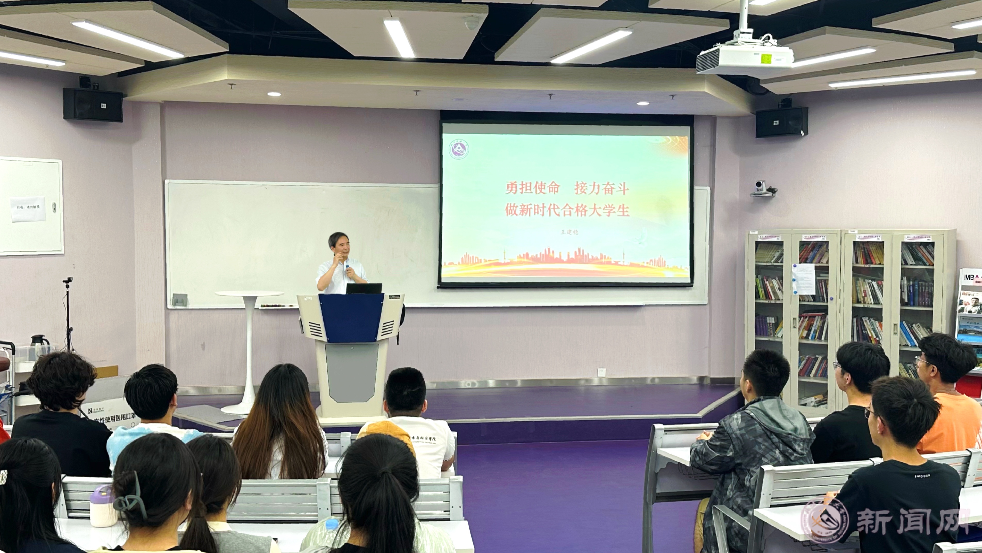 党委常委、副校长王建稳以《勇担使命 接力奋斗 做新时代合格大学生》为题,为学生党员分析“百年未有之大变局”,解读中国式现代化的特征和内涵,希望青年学生党员勇担时代使命,主动识变应变求变,勤于思考、善于选择、勇于奋斗、重于坚持,跟党一起奋斗,掌握过硬本领,成长为以中国式现代化全面推进中华民族伟大复兴必不可少的人才。