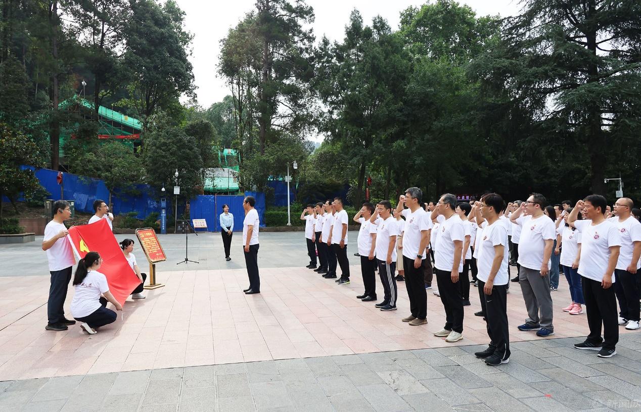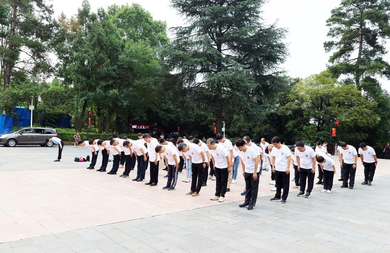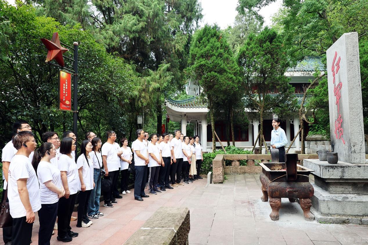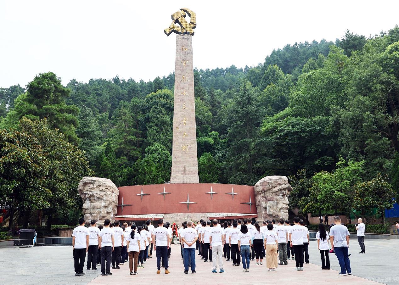 培训班学员首先来到遵义红军山烈士陵园,瞻仰红军烈士纪念碑,敬献花篮,缅怀长征英烈,并在史贞军副书记的带领下重温入党誓词。青山有幸埋忠骨,英烈精神永传承,铮铮誓言在绿树青山中回荡,学员们受到深刻的精神洗礼。
