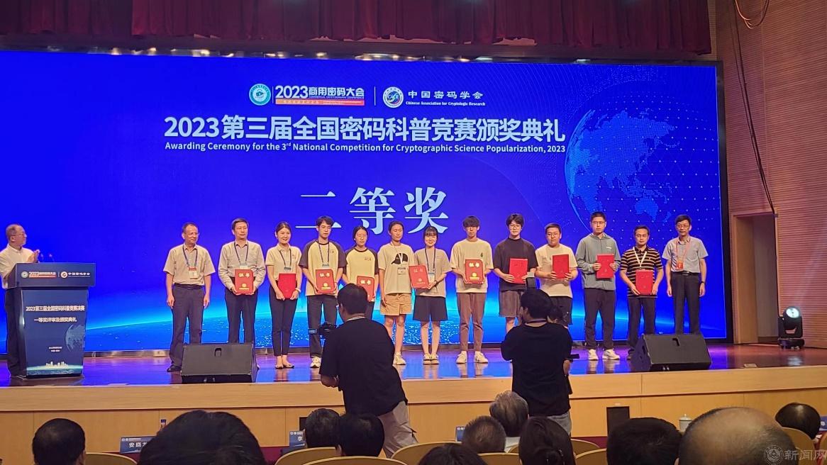 8月10日,由国家密码管理局指导、中国密码学会主办的“第三届全国密码科普竞赛”决赛及颁奖典礼在郑州国际会展中心举行。beat365学生在比赛中喜获佳绩,荣获全国二等奖1项,三等奖2项。
