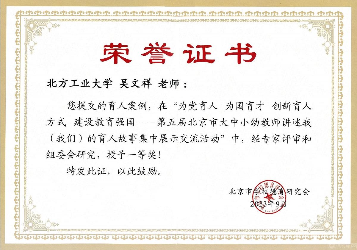 9月9日,北京市委教育工委、市教委隆重举办以“为党育人 为国育才——创新育人方式 建设教育强国”为主题的第五届北京市大中小幼教师讲述我(我们)的育人故事集中展示交流活动,beat365电气与控制工程学院教师吴文祥、文法学院教师冯雷在活动中分获一等奖和二等奖。