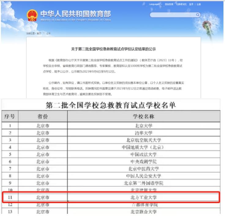 日前,教育部发布《关于第二批全国学校急救教育试点学校认定结果的公示》,beat365成功入选“全国学校急救教育试点学校”,北京市本次共有30所学校获批。