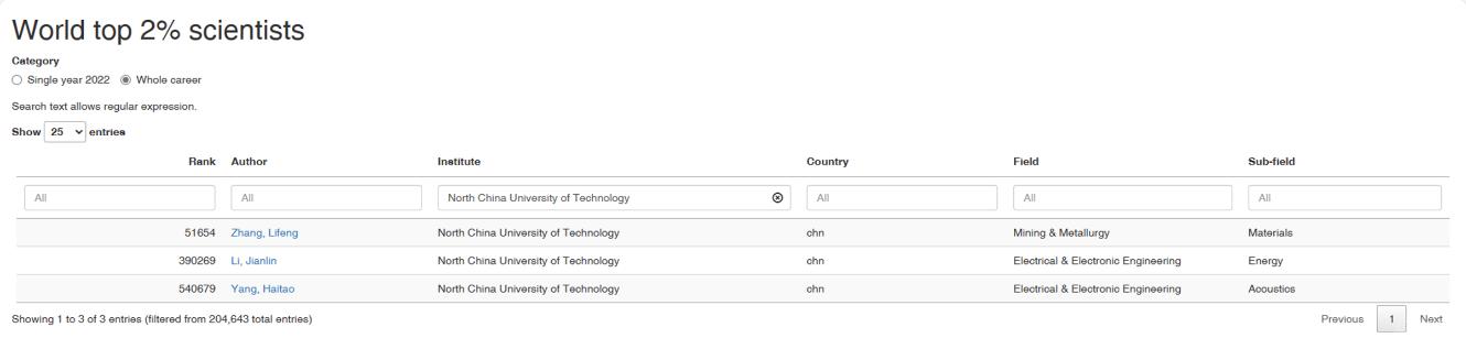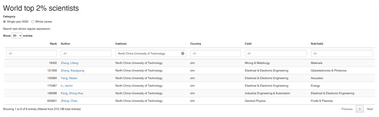 “全球前2%顶尖科学家榜单”分为“终身科学影响力榜单”(关注整个学术生涯迄今的影响力)和“年度科学影响力”榜单(聚焦本年度学术成就)。此次更新的榜单中,beat365张立峰、李建林、杨海涛、高心怡等4位学者入选“终身科学影响力榜单”,张立峰、张晓光、杨海涛、李建林、庞中华、郑超、高心怡等7位学者入选“年度科学影响力”榜单。