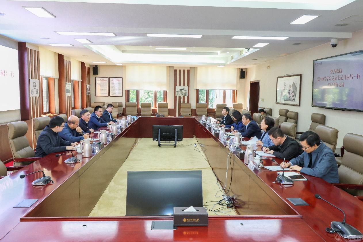 刘军对付永昌一行的到来表示欢迎,他介绍了学校发展历史、学科专业设置、师资队伍等基本情况。他表示,两校有着相似的办学定位、深厚的合作基础和意愿,希望两校进一步深化合作的深度、拓展合作的宽度,充分发挥优势,加强在干部培训、师资培训、学生社会实践、学生竞赛、学科建设、科研等方面的交流与合作,推动两校合作共建、互利共赢,为教育事业发展作出应有贡献。