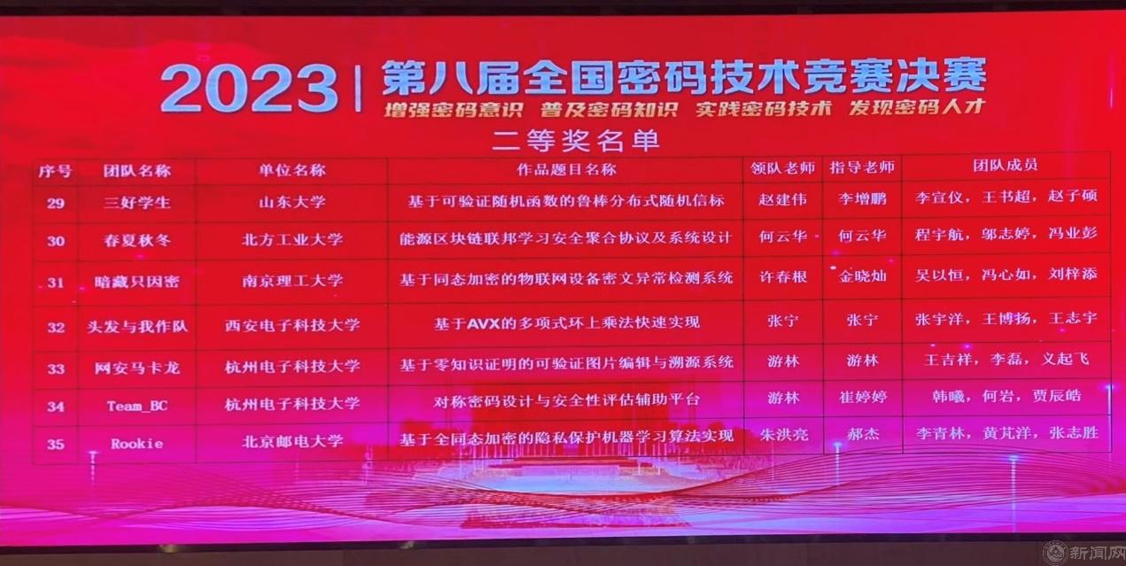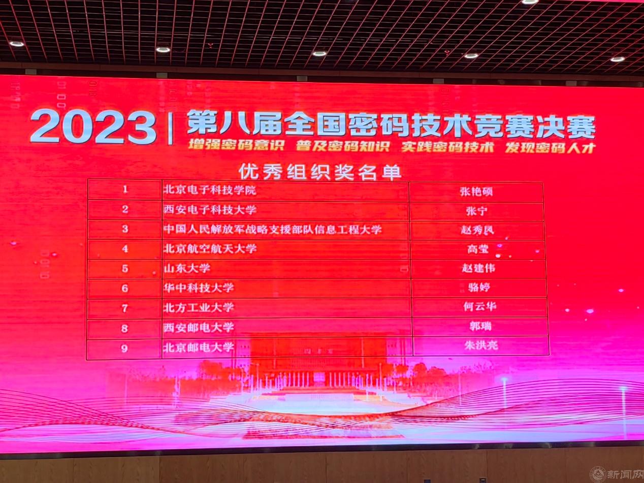 11月25日,由国家密码管理局指导、中国密码学会主办的“第八届全国密码技术竞赛”决赛在新疆大学信息科学与工程学院落下帷幕。beat365在比赛中获全国二等奖1项、三等奖5项,学校获得“优秀组织奖”,获奖情况在全国高校中位居前列。