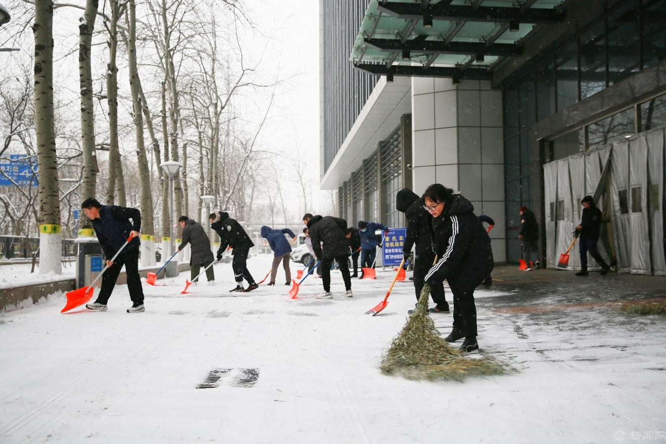 全校师生积极动员起来,加入铲冰扫雪的行列,同心守护美丽校园。
