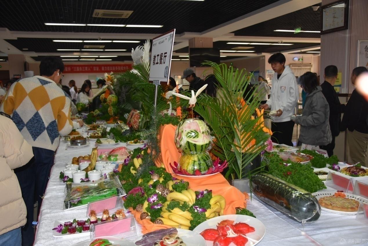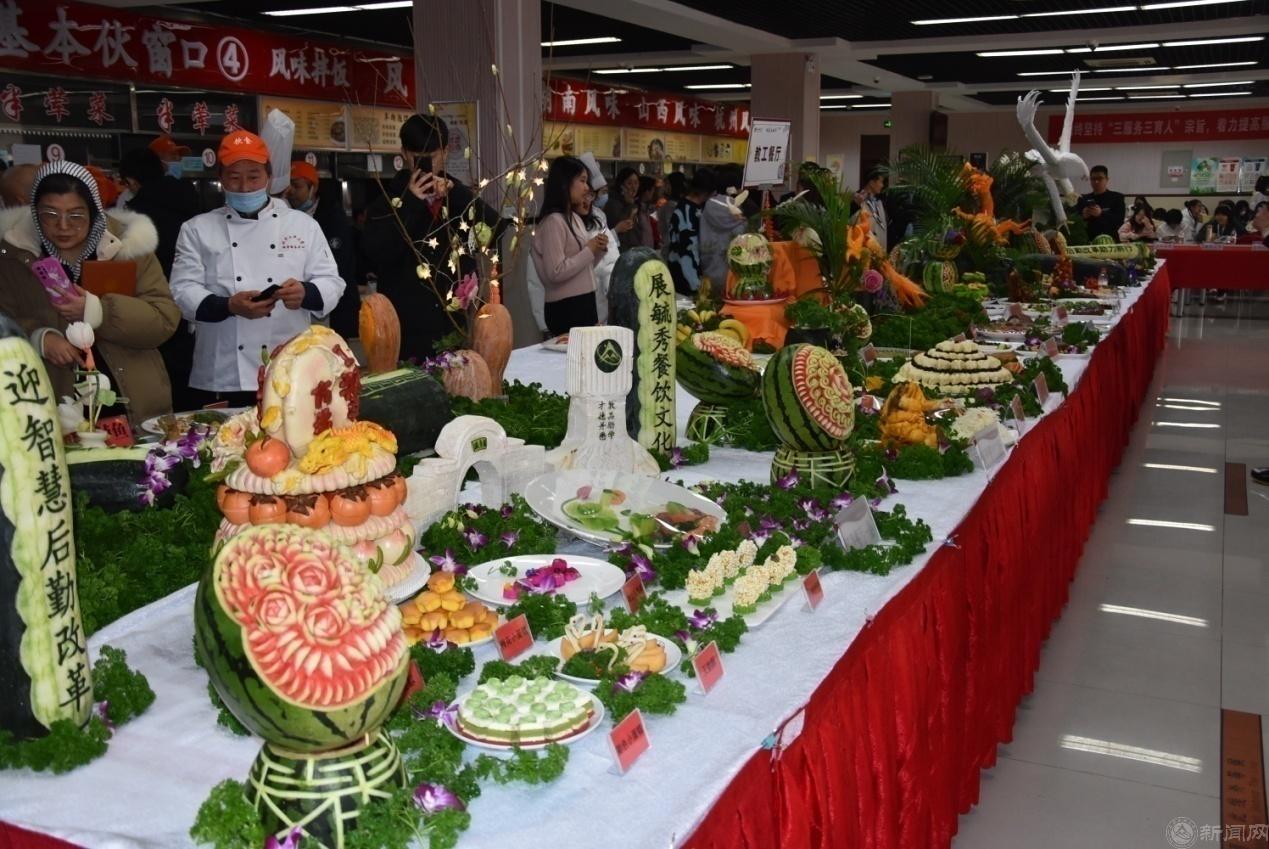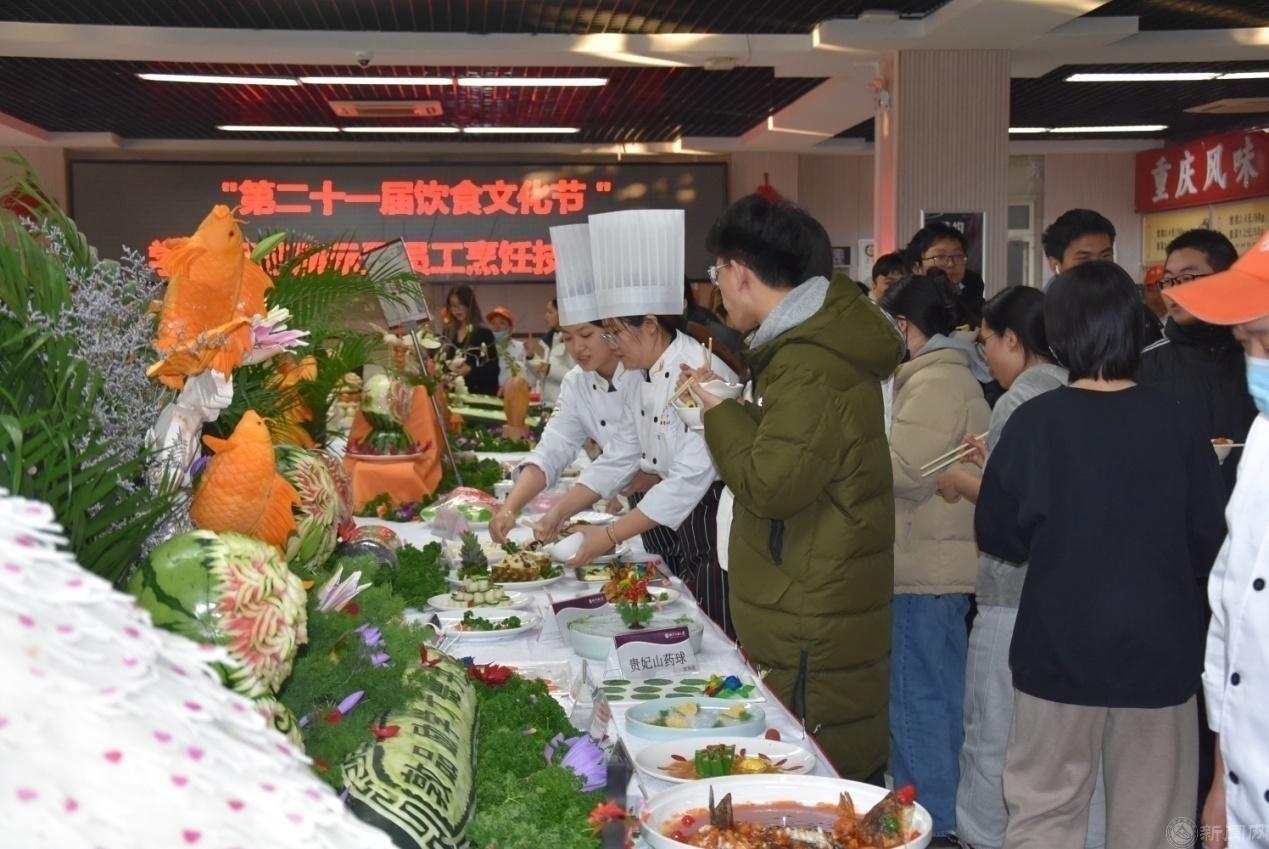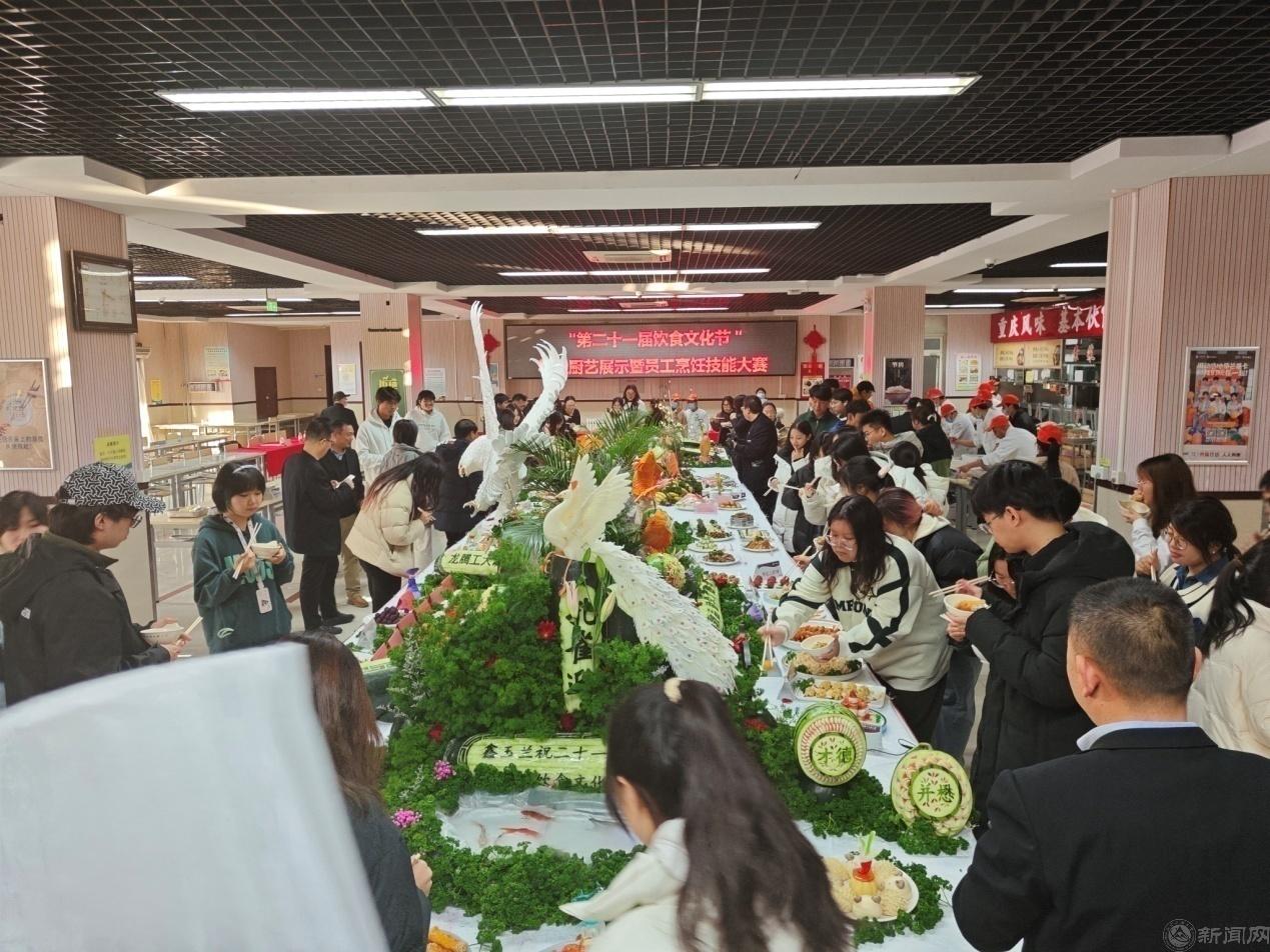 12月28日,饮食服务中心在毓秀餐厅二层举办“第二十一届饮食文化节”学生厨艺创新暨员工烹饪技能大赛。校党委副书记田红芳、史贞军,后勤部门干部员工及学生百余人参加活动。