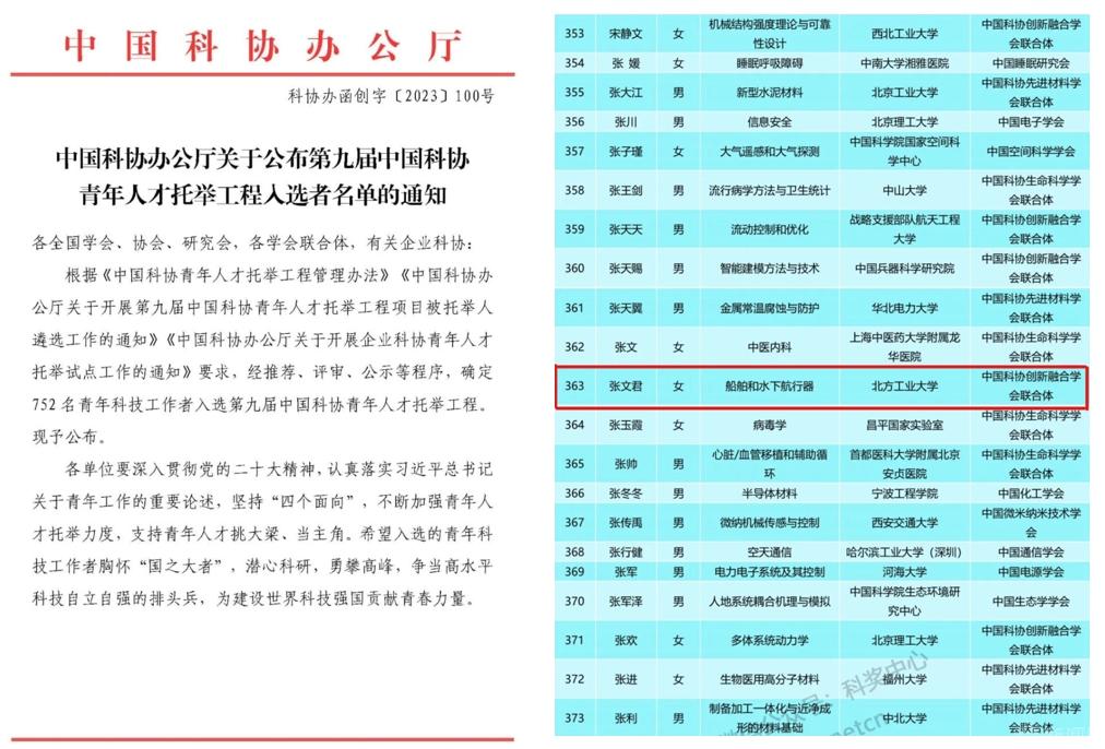 近日,中国科协公布第九届中国科协青年人才托举工程入选者名单,beat365电气与控制工程学院博士后张文君入选。
