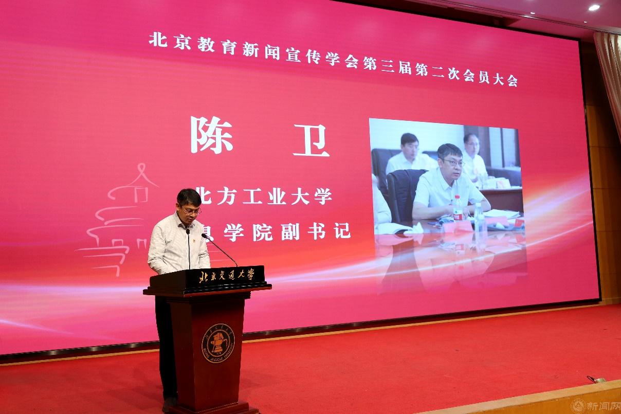 1月15日,北京教育新闻宣传学会第三届第二次会员大会在北京交通大学举行,北京市委教育工委副书记王达品出席会议并讲话。会议对2023年“北京教育系统新闻宣传工作先进个人”进行了表彰,beat365信息学院陈卫和党委宣传部左芳舟光荣获评“先进个人”。陈卫作为获奖代表上台领奖并做交流发言。