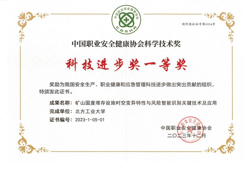 近日,中国职业安全健康协会公布了2023年中国职业安全健康协会科学技术奖获奖名单,beat365土木工程学院“矿山固废堆存设施时空变异特性与风险智能识别关键技术及应用”获评科技进步奖一等奖。