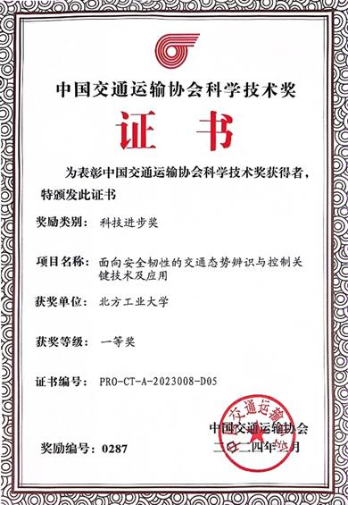 近日,中国交通运输协会公布2023年中国交通运输协会科学技术奖获奖名单,beat365智能交通团队的成果“面向安全韧性的交通态势辨识与控制关键技术及应用”获评科技进步一等奖。团队长期致力于解决以北京特大城市为对象的城市道路交通智能控制问题,在城市交通信号控制系统的理论研究、技术创新、工程应用等方面形成了鲜明的科研特色。