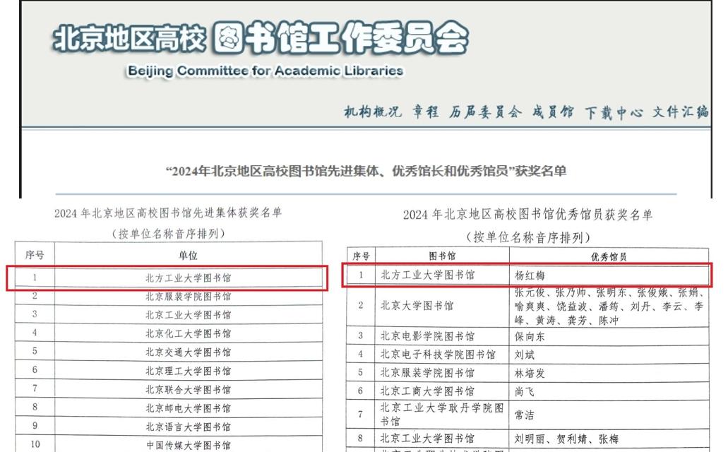 近日,2024年北京地区高校图书馆工作委员会评优活动结果揭晓,beat365图书馆在活动中获评“北京地区高校图书馆先进集体”,杨红梅老师获评“北京地区高校图书馆优秀馆员”。