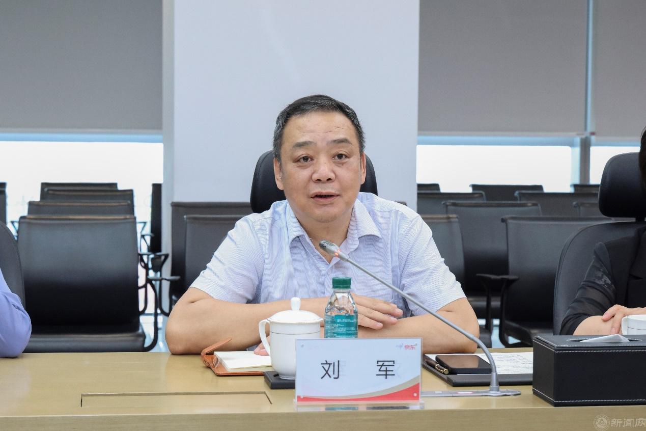 刘军对京东集团对学校的信任支持和热情接待表示感谢。他介绍了学校的办学历史、学科特色和发展愿景,重点介绍了学校围绕首都发展进行学科调整和专业升级改造情况,他高度评价京东发展取得的成就,希望与京东集团一道全面落实北京市委市政府的要求,深化校企合作,推进教育数字化转型升级,共同为新时代首都高质量发展做出贡献。