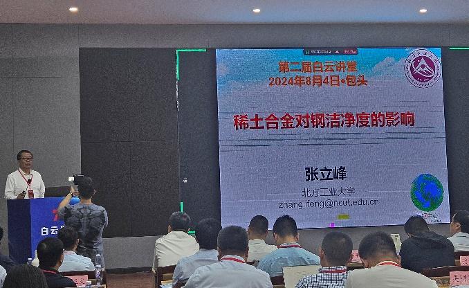 8月3日至4日,张立峰校长马不停蹄地赶赴内蒙古包头,参加了“第二届白云讲堂”。以“稀土合金对钢洁净度的影响”为题,为与会者详细阐述了稀土元素在无取向硅钢、304不锈钢和轴承钢等钢材中的应用效果与优势,报告深入浅出、见解独到,引起了现场技术专家的热烈讨论和深入交流。此次交流不仅展示了张立峰团队在稀土冶金领域的深厚积累与创新能力,也为推动稀土资源的高效利用与冶金产业的转型升级贡献了力量。