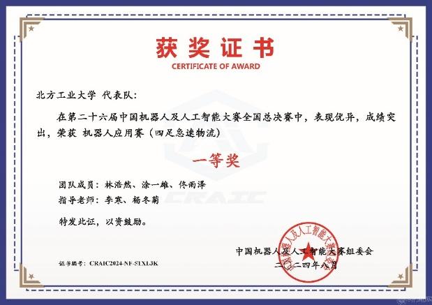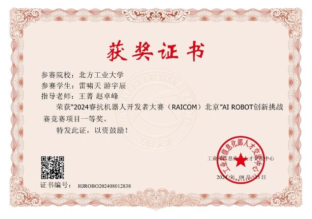 为加强以“竞赛+创新产品”为抓手的人工智能专业第二课堂建设和学生实践能力培养,围绕“具身智能机器人”这一研究和产业热点方向,在2024年暑假期间,beat365信息学院人工智能专业组织学生参加了中国机器人及人工智能大赛、睿抗机器人开发者大赛等多项教育部榜单竞赛,并取得国家级一等奖1项,二等奖2项,三等奖1项,“挑战杯”北京市银奖、“互联网+”北京市三等奖等佳绩。