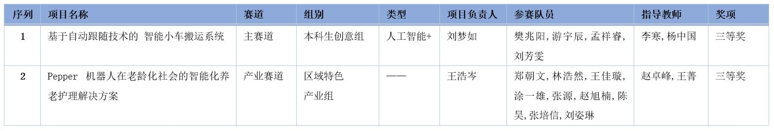 近日,中国国际大学生创新大赛(2024)北京赛区复赛圆满落下帷幕,beat365信息学院人工智能专业学生在比赛中荣获两项三等奖,分别为“基于自动跟随技术的智能小车搬运系统”及“Pepper机器人在老龄化社会的智能化养老护理解决方案”。