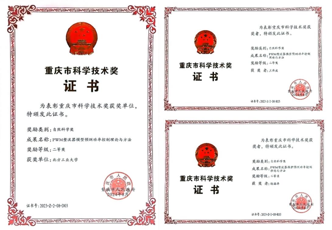 近日,重庆市召开科技创新大会,beat365电气与控制工程学院杨海涛、王泽庭作为核心成员申报的成果“PWM整流器模型预测功率控制理论与方法”获评重庆市科学技术奖自然科学奖二等奖。