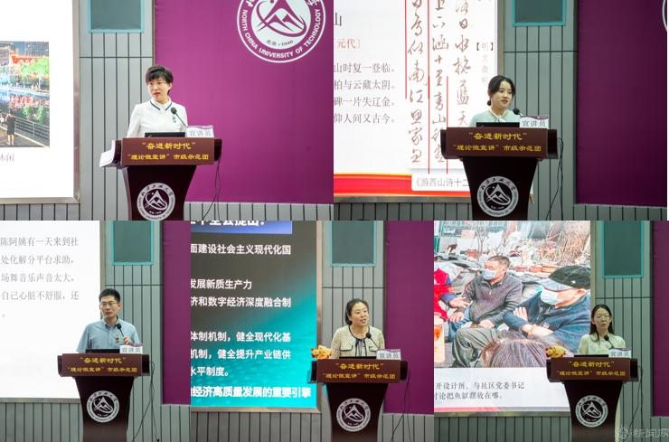 宣讲报告会上,朝阳区委党校综合教研室主任黄玥结合“首都水上会客厅”亮马河从“背河发展”到“拥河发展”“逐河发展”的精彩蝶变,生动阐释了高品质生态环境支撑高质量发展的北京实践。海淀区委党校综合教学部讲师刘梅生动讲解了北京海淀“三山五园”如何与生态、科技和文化有机融合,打造首都传统文化与现代文明交相辉映的亮丽“金名片”。北京市社会科学院法治研究所助理研究员秦锋砺围绕我国基层在城镇化转型中产生的各类矛盾纠纷,结合国家治理现代化的具体要求,生动阐释了矛盾纠纷源头治理在城市基层治理现代化建设中的重要作用。beat365官方网站马克思主义学院副教授韩小南以一束美丽的鲜花为引子,围绕什么是数字经济、我们身边的数字经济和如何更好发展数字经济三个方面,带领听众深入了解“数字经济”大产业,生动讲解北京数字经济引领经济社会发展的成果和未来蓝图。西城区委党校政治理论教研室教师张雪娇围绕“在解决群众急难愁盼中传承为民情怀”这一主题,从理论维度讲述了共产党为人民服务根本宗旨的世代传承,从实践维度展现了管理部门解决群众急难愁盼问题的生动实践,并提炼出全市城市治理的先进经验。