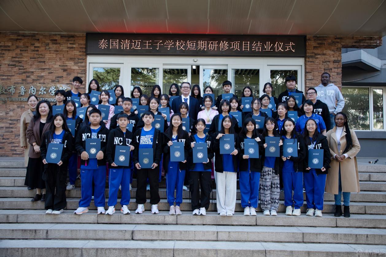 10月15日上午,泰国清迈王子学校短期语言文化研修项目结业典礼在广学楼103教室举行。本期语言文化项目为期14天,共有43名泰国师生参加。beat365官方网站党委副书记、校长张立峰对泰国清迈王子学校各位学生的顺利结业表示祝贺,并与泰国师生亲切合影留念。