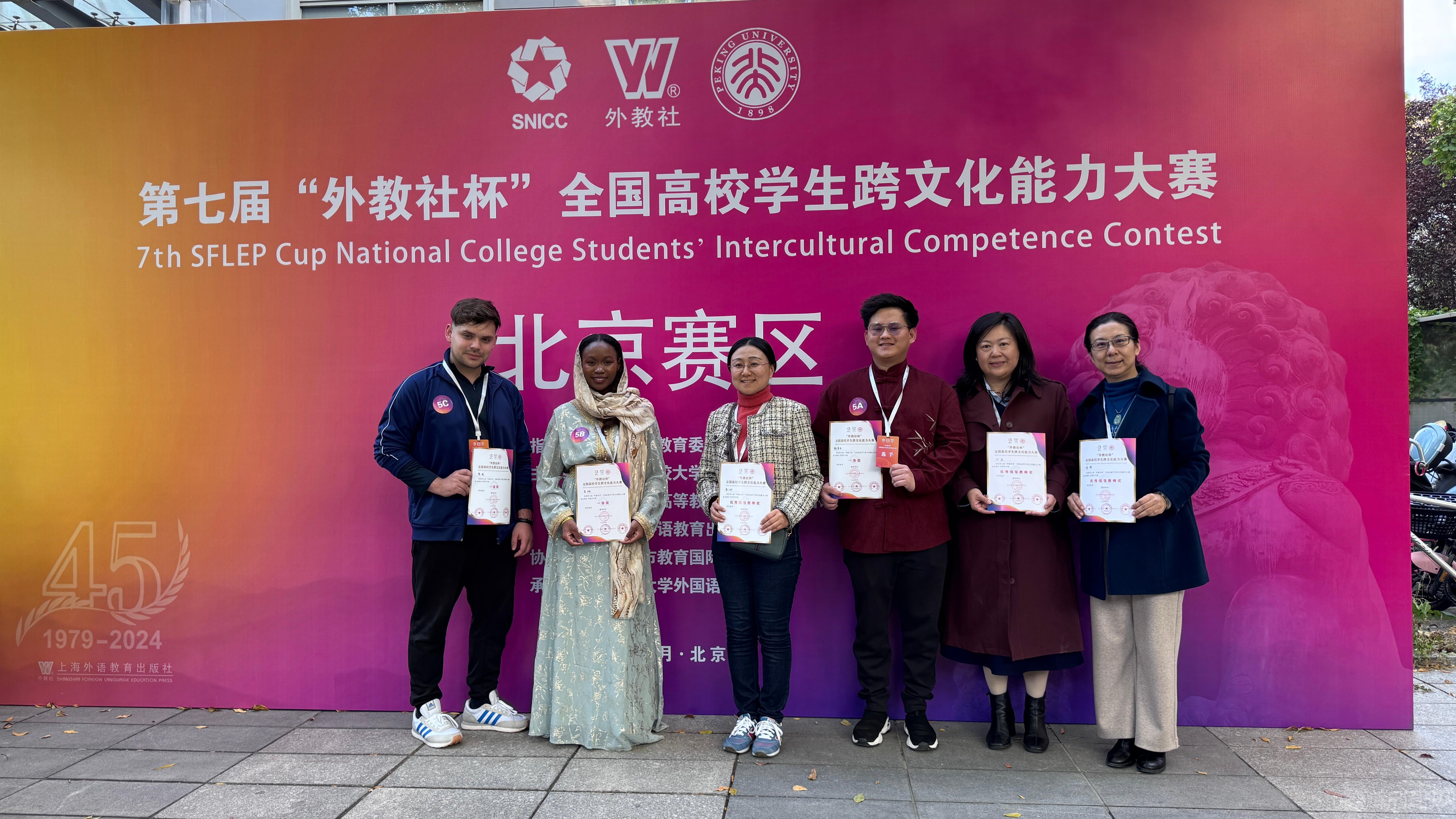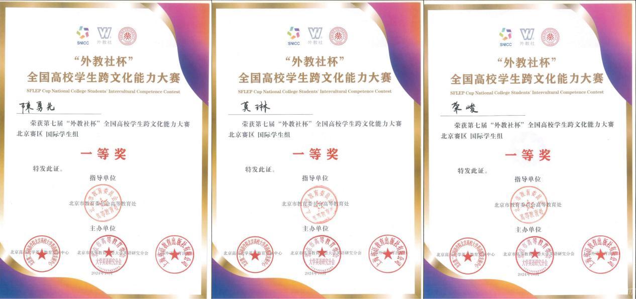 由北京高校大学英语教育发展中心、北京市高等教育学会大学英语研究会和上海外语教育出版社主办的第七届“外教社”杯北京高校学生跨文化能力大赛于10月26至27日在北京大学举行,beat365留学生陈勇先(印度尼西亚)、莫琳(莱索托)和荣峻(德国)组成的团队荣获一等奖。国际学院刘妍、徐美、李燕三位教师获评优秀指导教师奖。