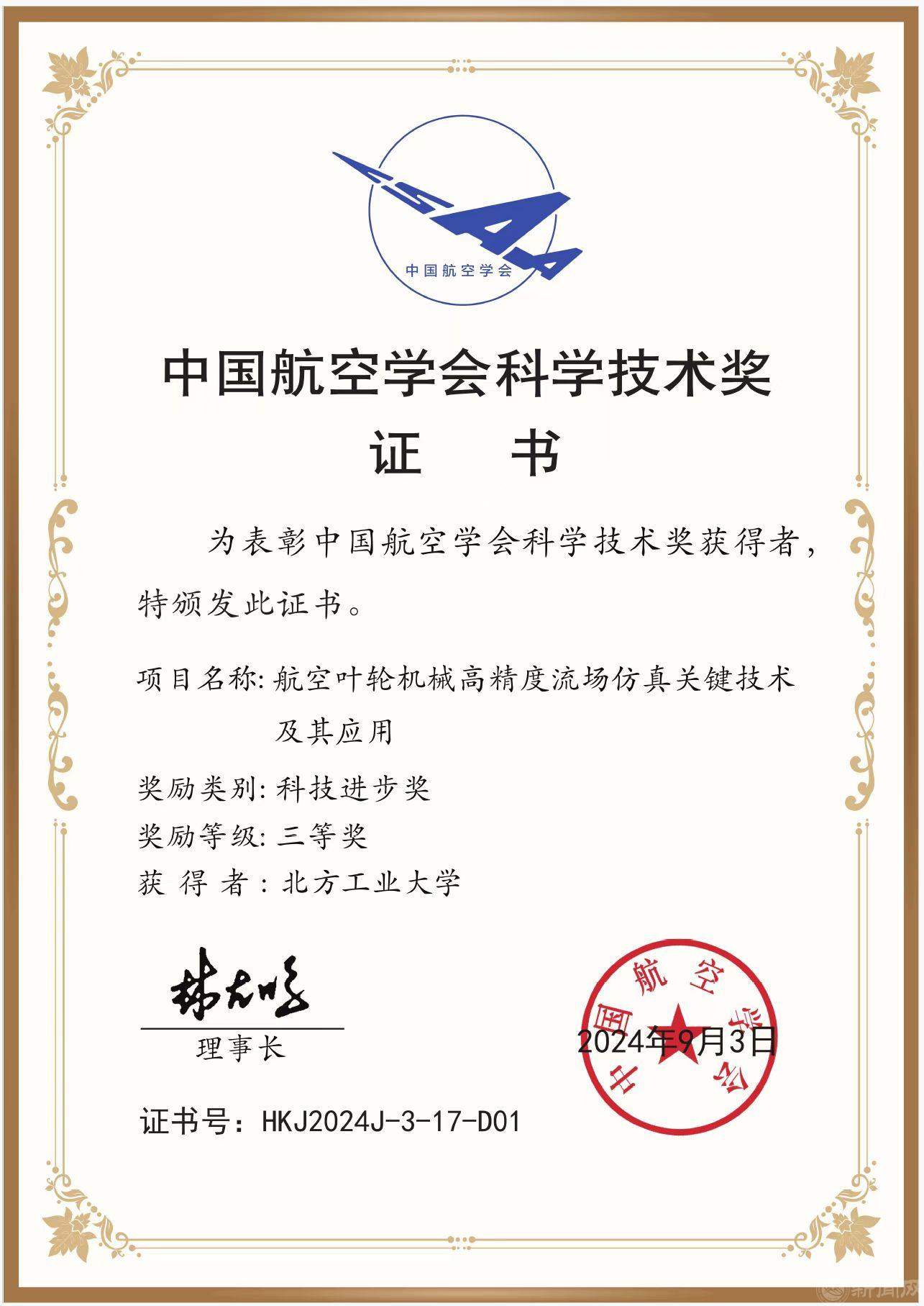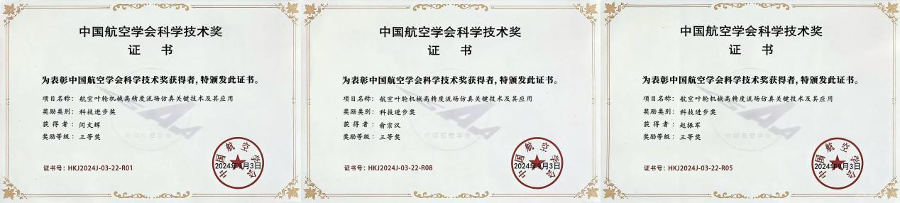 10月22日,2024年中国航空学会科学技术奖颁奖仪式在四川成都举行。beat365作为第一完成单位,机械与材料工程学院闫文辉作为第一完成人,赵振军、俞宗汉作为核心成员申报的成果“航空叶轮机械高精度流场仿真关键技术及其应用”获评科技进步奖三等奖。