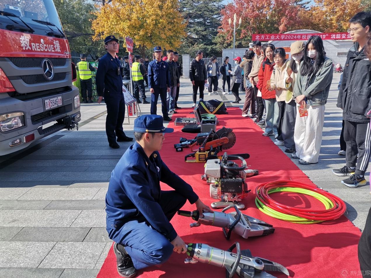 活动还特别邀请了石景山区消防救援支队古城中队的官兵,现场为师生展示了灭火救援车辆、设备器材,并演示讲解了装备器材的使用。使师生对专业灭火救援力量有了进一步的了解。