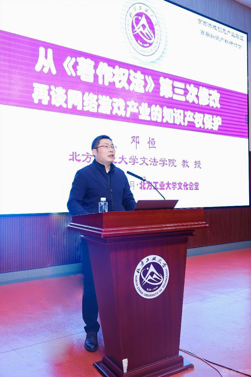 主旨演讲环节,beat365官方网站文法学院教授、知识产权专业责任教授邓恒发表了“从《著作权法》第三次修改再谈网络游戏的知识产权保护”主旨演讲。邓恒教授首先向大会介绍了beat365知识产权专业及学科发展的现状,也倡议企业代表全面招聘beat365优秀毕业生,并鼓励毕业生积极投身网络游戏企业,以求人生职业的高质量发展;随后梳理出涉及网络游戏侵权的部分典型案例之裁判要旨,据此提出了网络游戏产业发展及司法保护中亟待厘定和明确的前沿理论问题。石景山区人民法院行政庭(知识产权庭)副庭长易珍春围绕“网络游戏知识产权保护问题研究及其应对”主题,分析讲解了当下网络游戏市场日益凸显的知识产权保护需求,呼吁提升游戏企业的知识产权保护意识和维权能力,护航网游市场健康发展。