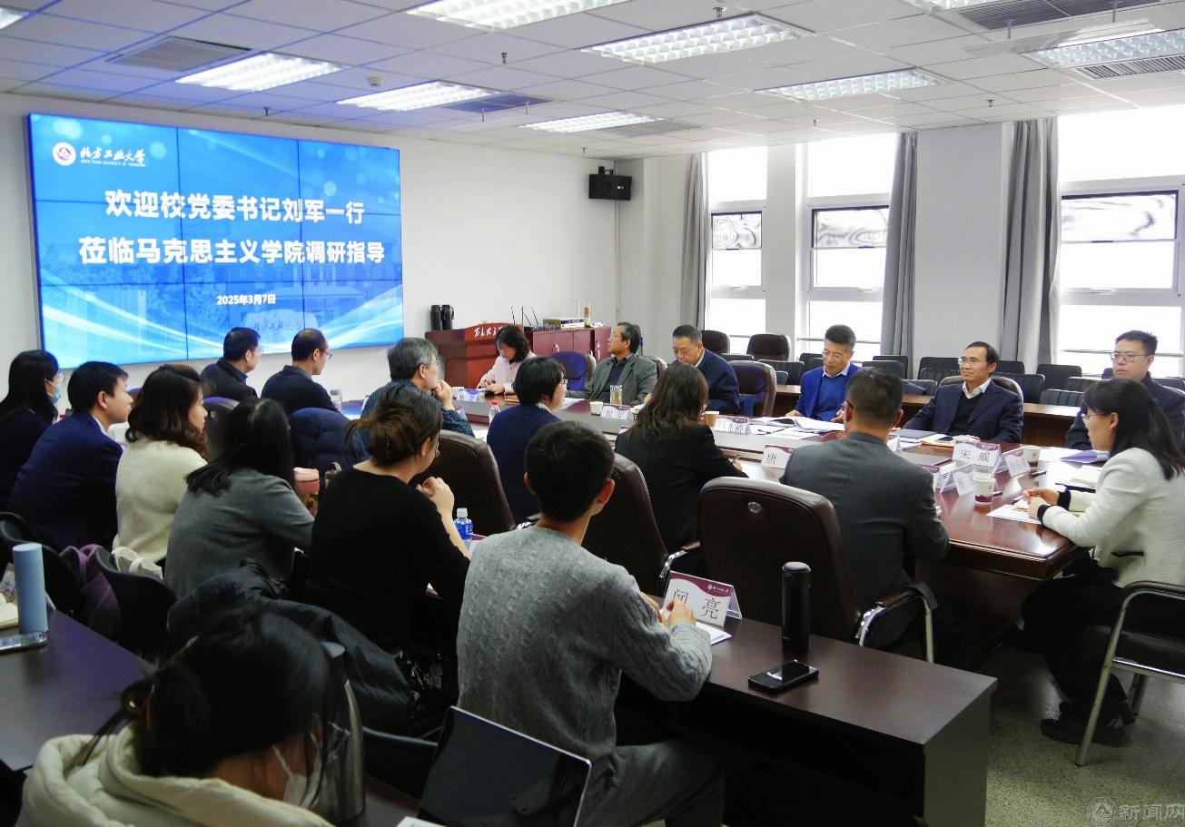 为深入贯彻落实习近平总书记对学校思政课建设的重要指示精神,3月7日下午,党委书记刘军一行到马克思主义学院开展专题调研,与学院师生深入交流。党委副书记姜孔桥、史贞军一同调研。