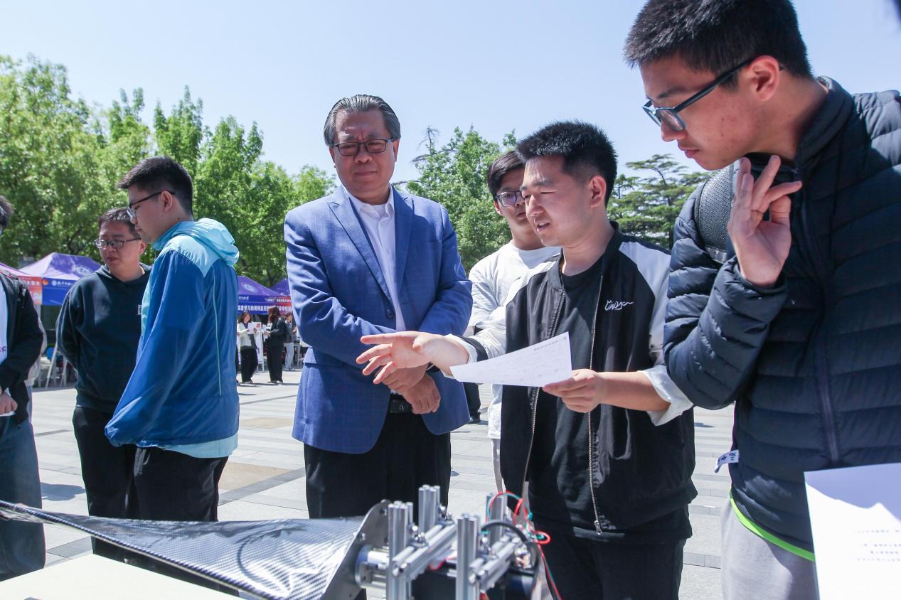校党委书记刘军,党委副书记、校长张立峰,党委副书记姜孔桥、史贞军等领导到场参观指导,与团队师生亲切交流,高度赞扬同学们的创新精神,勉励青年学子弘扬科学精神、传承“兴工报国”传统,积极投身科技创新,在科技创新的道路上永葆探索热情,为推动科技进步贡献青春力量,以真才实学服务国家战略需求。