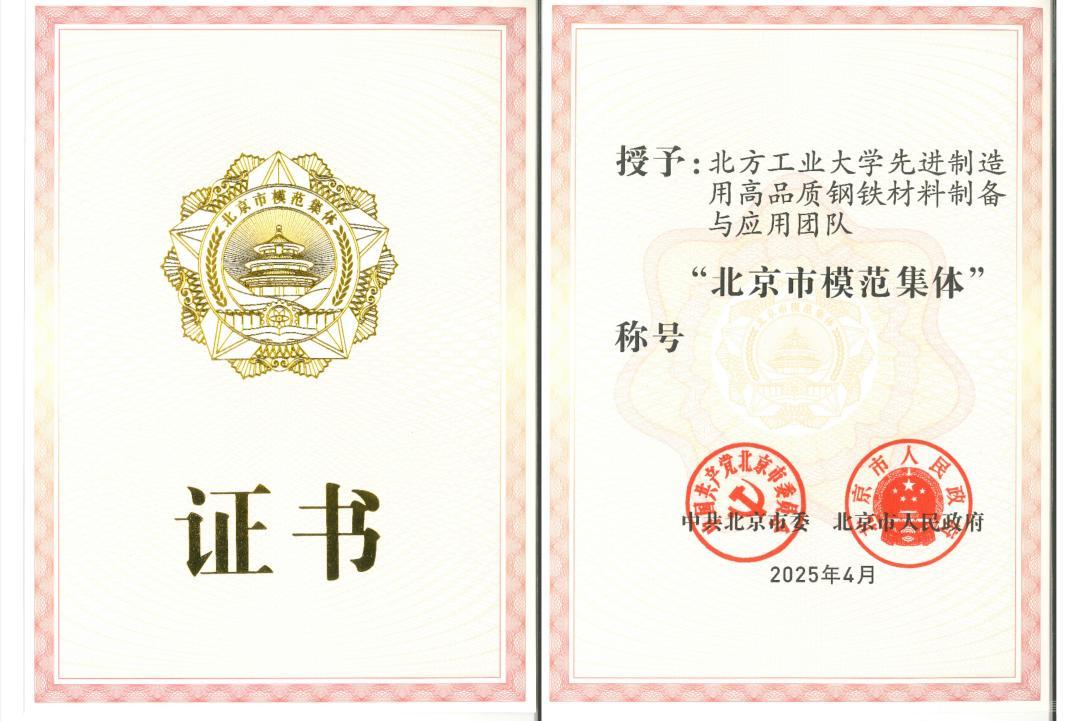 团队坚持服务国家高水平科技自立自强,通过科研创新,实现了一批“卡脖子”钢种的稳定制备,获省部级科技奖励一等奖8项。助力百吨级以上大型管板锻件应用于三峡白鹤滩水电站主轴,支撑国家重大工程建设;研发的无取向硅钢产品应用于新能源汽车电机铁芯,助力我国新能源汽车全球领跑;研发的高速铁路轨道用钢应用于京雄高铁建设,支撑我国交通安全。用实实在在的“硬核科技”,打造出北方工大科研“杀手锏”和“一招鲜”。坚持产学研用融合发展,主持国家重点研发计划、国家自然科学基金杰出青年基金、重点基金等国家级项目30余项,与宝武、河钢、首钢、鞍钢等国内大型钢铁企业展开科研合作项目70余项。坚持培养锻炼造就青年科技人才,培养青年长江、国家优青、青年拔尖等国家级青年人才4人,托举工程和博新计划4人,指导学生获得中国教育机器人大赛特等奖在内的各类大学生科技奖励20余项。坚持担当社会责任,承担北京市教育工会第二批“工匠学院”试点建设项目,落实中国教科文卫体工会“跨省结对 共筑美好”服务活动,与新疆工程学院“劳模创新工作室”结对子共同培养适应经济和社会发展的应用技术型人才。